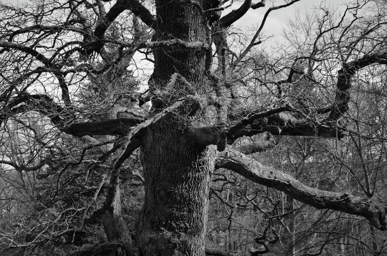 Keywords: tree aesthetic old black white log branches bark kahl crotch branch branches gnarled