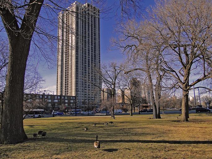Keywords: tree autumn tree autumn park trees autumn gold autumn weather houses the skyscraper birds geese park square nature life cycle rest