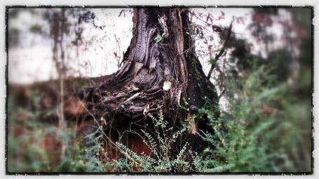 MAKE A MEME View Large Image tree base trunk stump framed focus blurred nature woods forest greenery growth