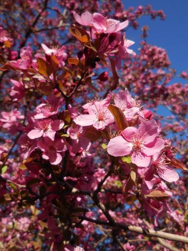 Keywords: tree blooming crab apple branches nature blossom pink tree branches outdoor spring