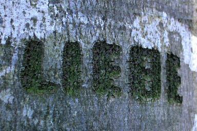 Keywords: tree carved name symbol engraved eingeritzter tree tree bark close letter letters memory
