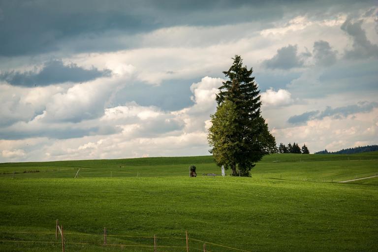 Keywords: tree clouds spruce sky structure pine cones tap pasture meadow alpine allgäu schönegger käse-alm schönegger alm conifer mountain meadow germany bavaria