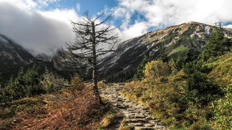 Keywords: tree dead nature sky dry landscape environment mountains scenery clouds valley
