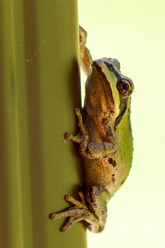 Keywords: tree frog hanging clued green frog amphibian tiny animal macro nature wildlife outside close-up gutter summer vibrant