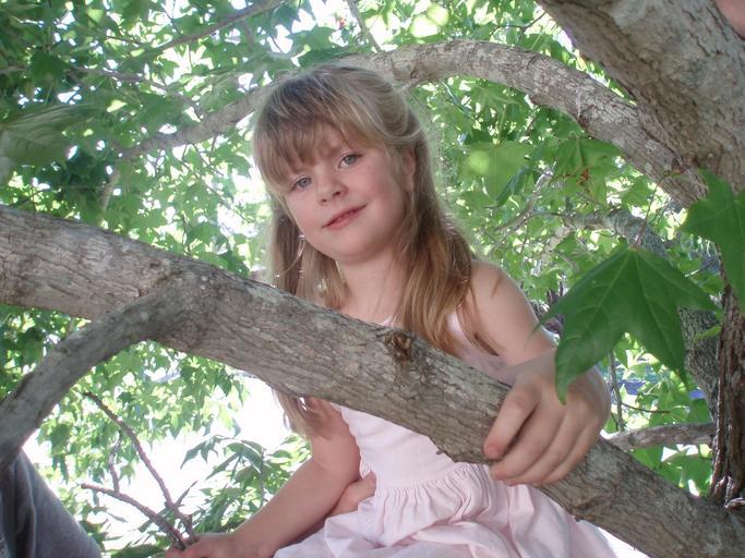 Keywords: tree house sweetness girl cute leaves summer nature green colour activity young leisure childhood clambering tree
