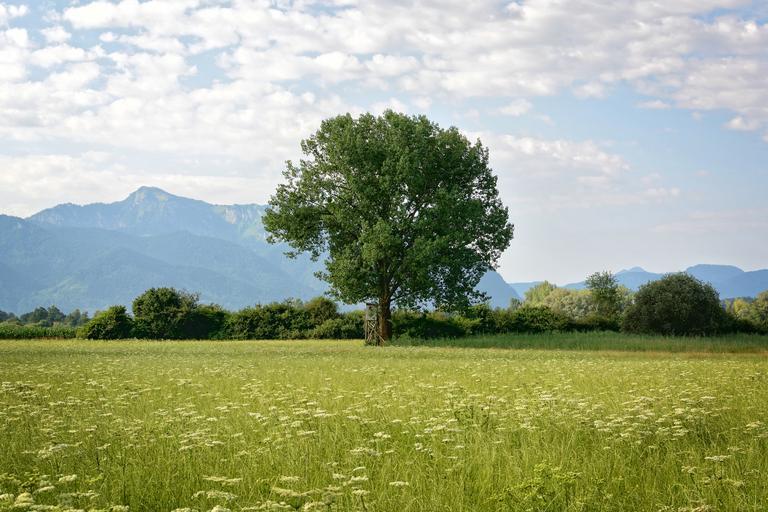 Keywords: tree individually nature green meadow sky landscape pasture field cornfield forest chiemgau bavaria holiday leisure recovery scenic view