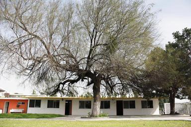 Keywords: tree large dry white trunk sky ceiling house