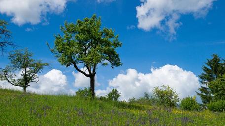 Keywords: tree nature landscape trees meadow in the green clouds sky