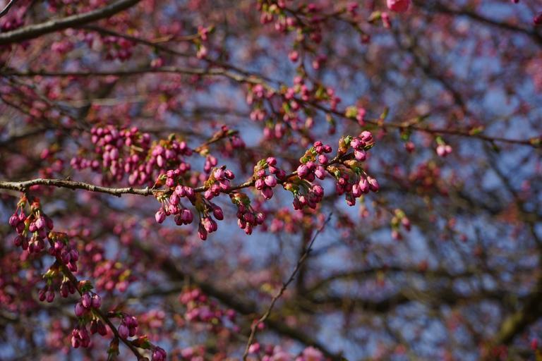 Keywords: tree ornamental tree park tree japanese cherry trees bud red purple road blossom japanese flowering cherry ornamental cherry japanese cherry cherry blossom blossom bloom colorful color spring branch