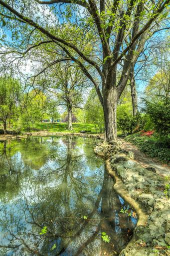 Keywords: tree park pond reflection nature landscape sunlight garden spring