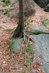 Keywords: tree root overgrown nature trees bark tree root mis shapen brown moss rock