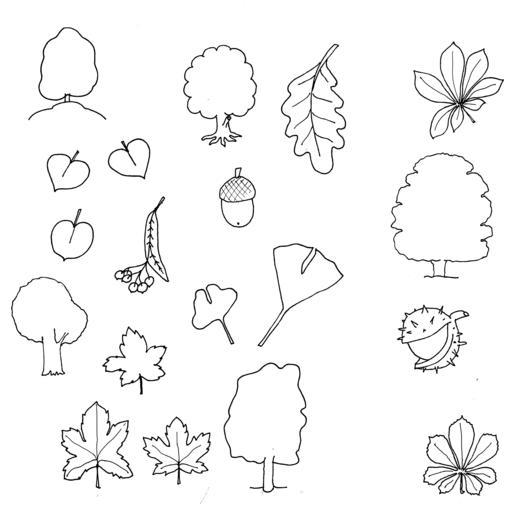 Keywords: tree sheet lime chestnut conker ginkgo oak maple acorn coloring book