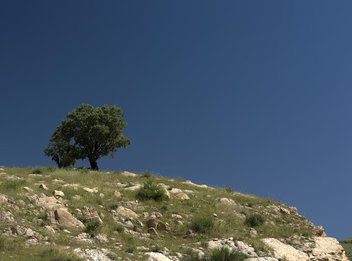 Keywords: tree sky blue green hill lonely