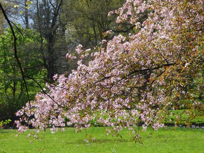 Keywords: tree sprig blooms flowers green park nature spring plant vegetation garden pink