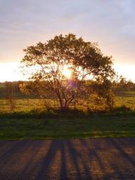 Keywords: tree sunset light filter filtering sunlight sunrise farm paddock fence