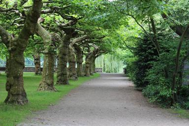 Keywords: tree trees avenue away by trees limited sidewalk tree lined avenue landscape endless nature park brown green forest path