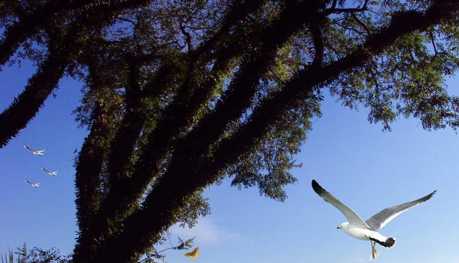 Keywords: tree vegetation plant trunk bird nature park sky blue sky