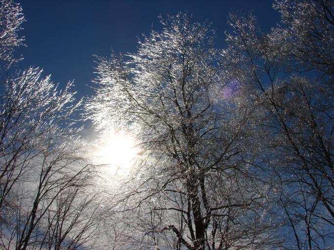 Keywords: trees ice sun cold icy tree organic agriculture outdoors environment trunk leaves branches nature woodland forest wilderness woods