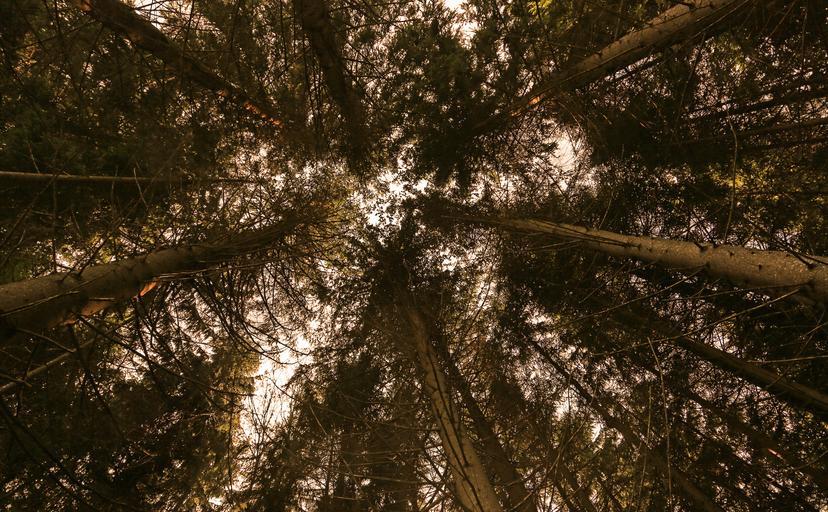 Keywords: trees nature forest landscape tree in the tree summer old tree log trees sleeping grove sky conifer plant road branches low angle shot up mood back light morgenstimmung abendstimmung romantic branch