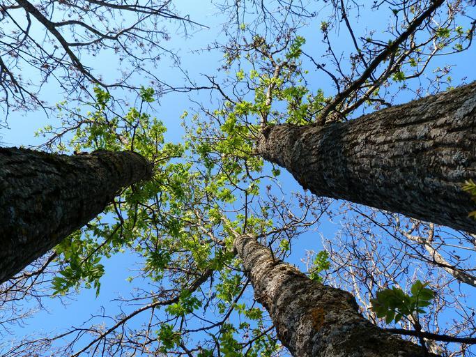 Keywords: trees nature spring perspective foliage sky blue branches light and shade creepage distances against the light top