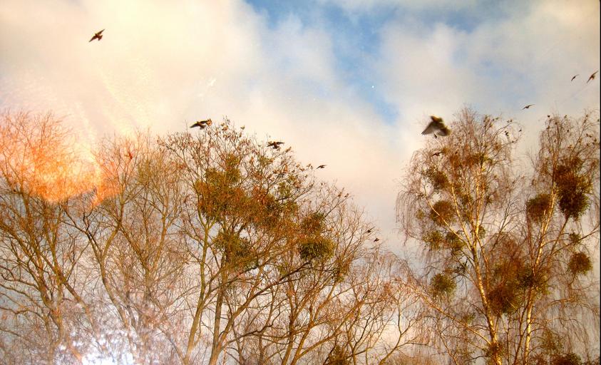 MAKE A MEME View Large Image treetop birds in trees birds in the air abendstimmung evening sun clouds sky blue sky crown
