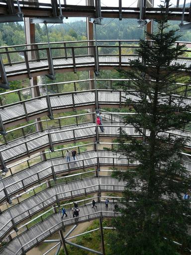 Keywords: treetop path web boardwalk construction observation tower platform spiral swirl upward tree trail nature trail forest trees treetop conifer