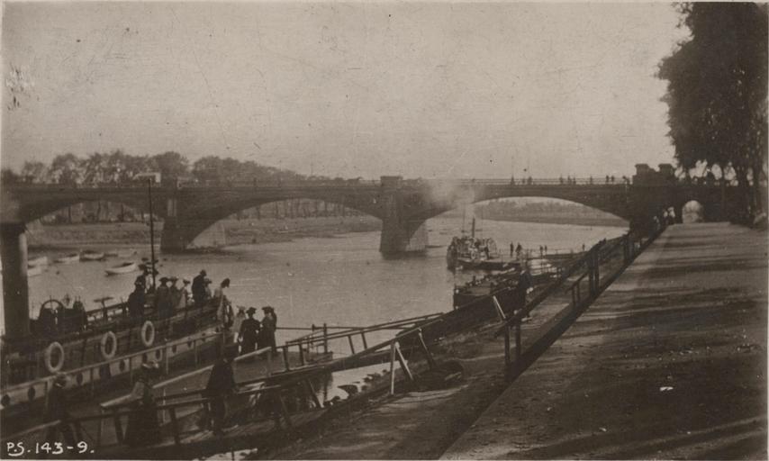 Keywords: Trent Bridge 206.jpg This scan of an Edwardian photo postcard is of interest for its content It shows Trent Bridge Nottingham England Below the bridge there is a 19th century paddle steamer with old-fashioned tall narrow funnel smoking away In the foreground tourists in Edwardian dress prepare for their penny sick outing on a steam boat The river banks are not yet built up with stone and steps and the passengers have to use gangways laid over the mud banks First upload http //i ebayimg com/images/g/RHAAAOSwVFlUIHlb/s-l1600 jpg Ebay Second upload scan of original postcard in my possession 1900 1914 author Trent Bridge archive images PD-old-70-1923 |