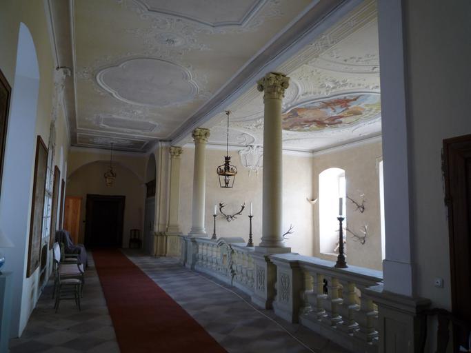 Keywords: Treppenhaus Schloß Sulzheim.JPG de Blick auf das Treppenhaus von hinten own eigenes Bild D j mueller 1 2 09 Schloss Sulzheim Baroque staircases in Bavaria Sulzheim