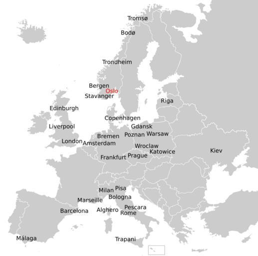 Keywords: TRF destination map.svg en Map of destinations served from Sandefjord Airport Torp own Arsenikk 2010-03-10 Sandefjord Airport Torp Maps of cities served by flights from given airport