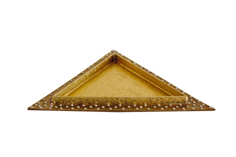 Keywords: triangular tray decorative restaurant decorated shiny show triangle gilt golden
