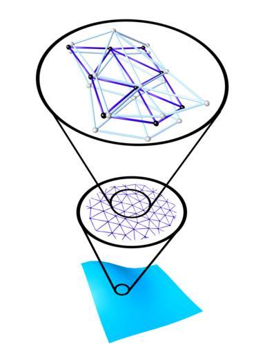 | Keywords: Triangulierung.svg en A large spin network state as a close-up of a manifold representing space Quantum fluctuations happen around that state de Eine Mannigfaltigkeit die den Raum darstellt entpuppt sich beim genaueren Hinsehen als feinmaschiger Spinnetzwerkzustand Um diesen Zustand herum finden Quantenfluktuationen statt own Benjamin Bahr Cc-zero Quantum field theory SVG physics SVG diagrams Language-neutral diagrams | ||||