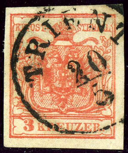 Keywords: Trient 3kr HP IIIa issue1850.jpg en Austrian KK 3 kreuzer stamp cancelled TRIENT South Tyrol Italy Hand paper Ferchenbauer Type IIIa 2013-02-07 16 03 41 own Jacquesverlaeken Scanned object > 100 years old cc-zero Uploaded with UploadWizard 1850 stamps of Austria Buonconsiglio Castle Postmarks in South-Tyrol Trentino Region
