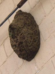 Keywords: Trigona-spinipes-nest-unicamp-03.png en Nest of stingless bees Trigona spinipes on the wall of a building at the State University of Campinas Brazil The nest is a couple of months old; it is built of dirt and other debris The greenish part possibly including cow or horse dung is the most recent addition A couple of bees are visible as bright specks The cinder blocks are about 40 cm wide and 19 cm tall excluding the mortar The wall is painted tan-beige; the white smudges below the nest are places where the paint peeled off showing the older white paint layer Picture taken by J Stolfi with a Sony DSC-V1 camera with some post-processing own Jorge Stolfi 2008 04 17 at 14 07 09 local time File Trigona-spinipes-nest-unicamp-01 png Trigona spinipes |