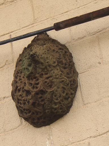 Keywords: Trigona-spinipes-nest-unicamp-05.png en Nest of stingless bees Trigona spinipes on the wall of a building at the State University of Campinas Brazil The nest is a couple of months old; it is built of dirt and other debris The greenish part possibly including cow or horse dung is the most recent addition A couple of bees are visible as bright specks The cinder blocks are about 40 cm wide and 19 cm tall excluding the mortar The wall is painted tan-beige; the white smudges below the nest are places where the paint peeled off showing the older white paint layer Picture taken by J Stolfi with a Sony DSC-V1 camera with some post-processing own Jorge Stolfi 2008 04 17 at 14 07 35 local time File Trigona-spinipes-nest-unicamp-04 png Trigona spinipes |