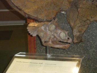 Keywords: Trike baby.JPG Picture of the skull of a juvenile Triceratops mounted in the atrium of the library in the Valley Life Sciences Building at the University of California Berkeley It is mounted next to an adult skull part of which can be seen above the juvenile The skull is a polyester cast modeled after a real fossil found in Montana in the United States The frill and back of the skull are known but everything in front of the eye socket is speculative I took this picture in June of 2006 and release all rights 2006-06-02 own assumed Sheep81~commonswiki Triceratops juvenile skulls Dinosaurs in museums |