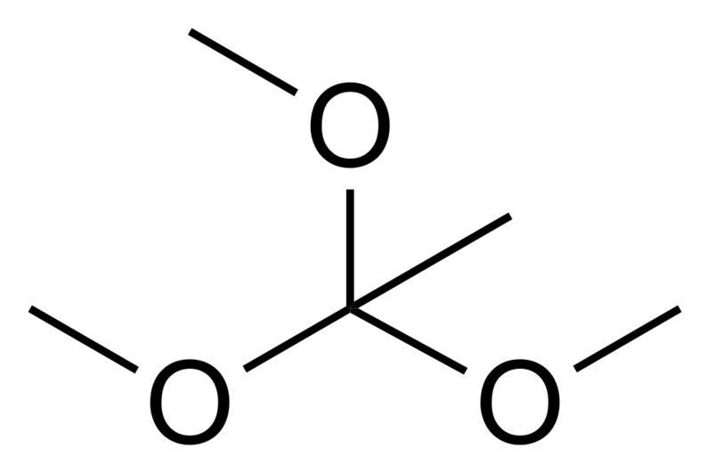 Keywords: Trimethyl orthoacetate skeletal.svg Chemical structure of trimethyl orthoacetate Own 13 14 27 October 2010 UTC Edgar181 <span class signature-talk >talk</span> Orthoesters Methyl esters