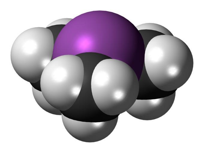 Keywords: Trimethylstibine-3D-spacefill.png Space-filling model of the trimethylstibine molecule an organic antimony compound Colour code 505050 Carbon C black<br> F0F0F0 Hydrogen H white<br> AA5ABE Antimony Sb lilac<br> 2011-06-09 own DS Visualizer Jynto talk Ball-and-stick version cc-zero Organoantimony compounds Methyl compounds Images by Jynto |