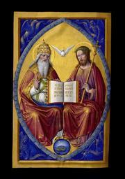 | Keywords: Trinité Grandes Heures Anne de Bretagne.jpg Grandes Heures d'Anne de Bretagne Reine de France 1477-1514 f 155v Grandes Heures of Anne of Brittany Queen consort of France 1477-1514 f 155v <br> God the Father on left Jesus on right holding book with seven seals open to Alpha and Omega passage dove of Holy Spirit in center animal symbols of Four Evangelists in corners 1503-1508 for work 2013-12-08 for upload ARK-BNF http //gallica bnf fr/ark /12148/btv1b52500984v/f319 item Permalink Creator Jean Bourdichon Upload stitching and restorations by Jebulon This is a stitching Preparation rotation frame and restoration colors levels removing tears some spots and dust by Jebulon with GIMP Assessments 1 1 Miniatures of Holy Trinity in Les Grandes Heures of Anne of Brittany 00 19 15 December 2013 UTC Trinité Grandes Heures Anne de Bretagne jpg PD-Art-100 Uploaded with UploadWizard Medieval miniatures of Holy Trinity 1500s paintings from France Grandes Heures d'Anne de Bretagne Paintings of men with open books Alpha Omega Paintings of sitting men Four Living Creatures Portrait paintings of women wearing tiaras diadems Red clothing in art male Valued images by Jebulon Featured pictures by Jebulon Featured pictures from Bibliothèque nationale de France |