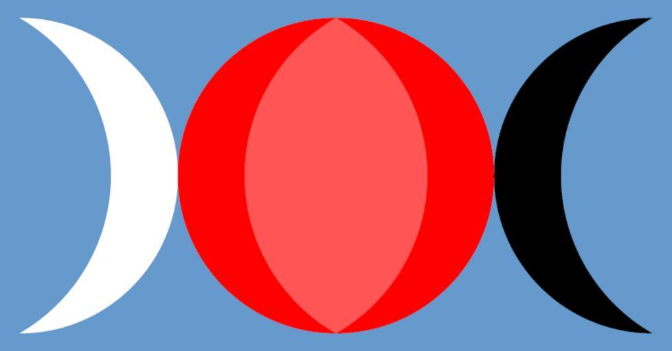 Keywords: Triple-Goddess-Waxing-Full-Waning-Symbol-multicolored.png Triple Goddess Symbol composed of waxing crescent full moon and waning crescent colored version Uses symbolic colors according to Robert Graves the New Moon is the white goddess of birth and growth; the Full Moon the red goddess of love and battle; the Old Moon the black goddess of death and divination See Image Triple-Goddess-Waxing-Full-Waning-Symbol png for a further explanation of the general symbol or Image Triple-Goddess-Waxing-Full-Waning-Symbol-filled png for a monochromatic version See Image Three-Crescents-Diane-Poitiers png for a different crescent symbol Own -- Generated by means of the following PostScript code <pre> 972 dup scale uncomment for A4 paper 4 6 8 setrgbcolor 0 236 moveto 612 0 rlineto 0 320 rlineto -612 0 rlineto fill 1 1 1 setrgbcolor 18 396 144 -90 90 arc -65 138439 396 166 276878 60 -60 arcn fill 0 0 0 setrgbcolor 594 396 144 90 -90 arc 677 138439 396 166 276878 -120 120 arcn fill 1 0 0 setrgbcolor 306 396 144 -270 90 arc fill 1 334 334 setrgbcolor 222 861561 396 166 276878 60 -60 arcn 389 138439 396 166 276878 -120 120 arcn fill showpage EOF</pre> 2005-11 AnonMoos Triple-Goddess-Waxing-Full-Waning-Symbol-multicolored svg For another version of this tricolored symbol see http //wicca timerift net/triple shtml For versions of the general symbol based on moon photographs see Image Wiccan Triple Moon png Crescent moon symbols Goddess movement - Thealogy symbols Wiccan symbols Images with PostScript source code |