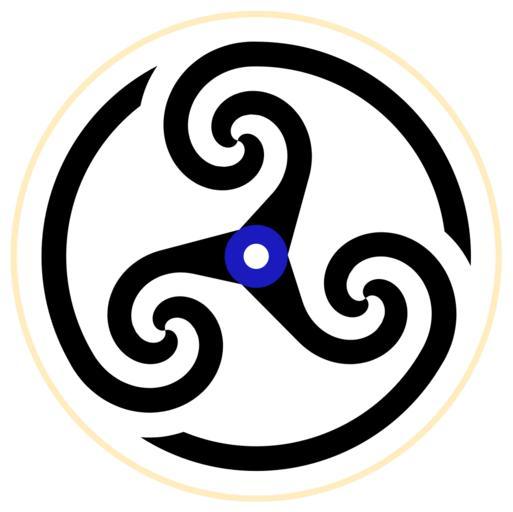 MAKE A MEME View Large Image Triple-spiral-wheeled-simple.svg An attempt at a simple form of a wheeled type of Triskelion symbol containing three double spirals connected together by spokes on the inside and which branch out into arcs of a circle partially enclosing ...