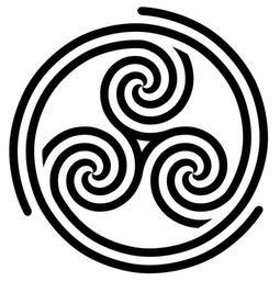 | Keywords: Triple-Triple-Spiral-Trisk-simpler.svg  A triskelion of three three-fold spirals which is wheeled enclosed within overall spirals ; this is a simplified version of Image Triple-Triple-Spiral-triskelion svg For a basic version of the Triple-spiral symbol and links to further variants see Image Triple-Spiral-Symbol svg own - This image is a conversion of the following PostScript vector source code <pre> /archimdouble PostScript program to display an Archimedean spiral by approximating it with Bezier curves Can display a double spiral two spirals rotated by 180 degrees with respect to each other Parameters centerx horizontal coordinate of center of spiral centery vertical coordinate of center of spiral rotf degrees to rotate /sepwid 110 def width separating successive turnings of spiral half this if double spiral is selected /incrm 30 def insert a curve point after this number of degrees /sweeps 1 def number of 360 degree turnings to show /double 1 def change to 0 to display single spiral /triple 1 def change to 0 to for non-triple inner spiral Procedures /pi 3 1415926535898 def/radians 57 295779513082 def /sepwid sepwid pi div 2 div def gsave centerx centery translate rotf rotate /aspiral /first 1 def lower incrm sweeps 360 mul 8 dup repeat phase add cos/costh exch def phase add sin/sinth exch def costh mul radians div/thcosth exch def sinth mul radians div/thsinth exch def thcosth sepwid mul/x exch def thsinth sepwid mul/y exch def 0 eq phase 90 eq phase 270 eq or and /slope 999999999 def /slope sinth thcosth add costh thsinth sub div def ifelse sinth 0 gt sinth 0 eq costh -1 eq and or /flag -1 def /flag 1 def ifelse /A exch def phase 0 eq phase 180 eq or A 49 29348 lt A 180 gt A 196 273450852 lt and A 360 gt A 368 8301 lt and A 540 gt A 545 9907 lt and A 720 gt A 724 5217 lt and A 900 gt A 903 6281968 lt and or or or or or /flag flag neg def if if phase 120 eq phase 300 eq or A 10 lt A 80 gt A 100 lt and or /flag flag neg def if if incrm sub 3 dup repeat phase add cos sepwid mul mul radians div /prevx exch def phase add sin sepwid mul mul radians div /prevy exch def incrm add 3 dup repeat phase add cos sepwid mul mul radians div /nextx exch def phase add sin sepwid mul mul radians div /nexty exch def /prevdist x prevx sub dup mul y prevy sub dup mul add sqrt pi div def /nextdist x nextx sub dup mul y nexty sub dup mul add sqrt pi div def /normaliz slope slope mul 1 add sqrt def 0 eq 0 0 moveto/prevbezx phase cos nextdist mul def/prevbezy phase sin nextdist mul def/first 0 def first 1 eq x y moveto/first 0 def prevbezx prevbezy x 1 flag mul normaliz div prevdist mul sub y slope flag mul normaliz div prevdist mul sub x y curveto ifelse /prevbezx x 1 flag mul normaliz div nextdist mul add def /prevbezy y slope flag mul normaliz div nextdist mul add def ifelse for stroke def /phase 0 def aspiral If different sweeps parameter for second spiral define here double 0 ne /sweeps 92 def/phase 180 def aspiral if triple 0 ne /sweeps 1 14 def/phase 120 def aspiral double 0 ne /sweeps 76 def/phase 300 def aspiral if /sweeps 92 def/phase 240 def aspiral double 0 ne /sweeps 1 def/phase 60 def aspiral if if grestore def -218 -216 translate /curvedge gsave centerx centery translate rotf rotate /lower 330 def/phase 180 def/incrm 11 666 def/sweeps 99 def aspiral /lower 390 def/phase 120 def/incrm 5 32 def/sweeps 1 1 def aspiral /lower 383 22 def/phase 0 def/incrm 14 45 def/sweeps 1 14 def aspiral grestore/lower 0 def def/lower 0 def /centerx 414 def/centery 550 def/rotf 0 def archimdouble curvedge /centerx 634 def/centery 550 def/rotf 120 def archimdouble curvedge /centerx 524 def/centery 740 52558883257650228801909756565 def/rotf 240 def archimdouble curvedge/incrm 30 def 524 613 5085296108588340960063658552 translate /tripl1 /phase 60 def aspiral/phase 180 def aspiral/phase 300 def aspiral def gsave 99378 dup scale/sweeps 2 59 def/lower 690 def /phase 0 def aspiral/phase 120 def aspiral/phase 240 def aspiral grestore gsave 99423 dup scale/sweeps 2 75 def/lower 750 def tripl1 grestore gsave 996 dup scale/sweeps 2 04 def/lower 723 403 def/incrm 9 801 def tripl1 grestore showpage EOF</pre> 2008 AnonMoos Triple spiral Computer generated mandalas Archimedean spirals Images with PostScript source code |