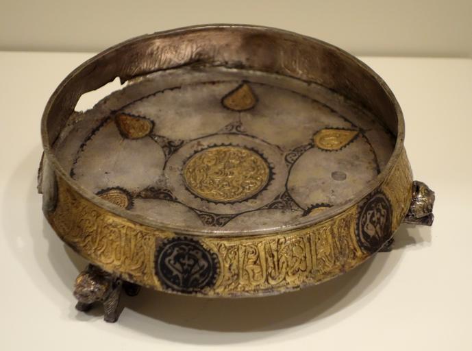 Keywords: Tripod dish, Iran, Seljuk period, late 12th or early 13th century AD, silver with gilt, engraving, and niello - Cincinnati Art Museum - DSC04010.JPG en Exhibit in the Cincinnati Art Museum Cincinnati Ohio USA This artwork is in the public domain because the artist died more than 70 years ago Photography was permitted in the museum without restriction 2013-05-14 11 16 59 own Daderot cc-zero Uploaded with UploadWizard Near Eastern metalwork in the Cincinnati Art Museum Seljuq art |