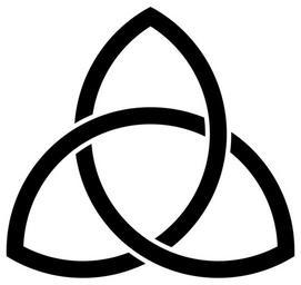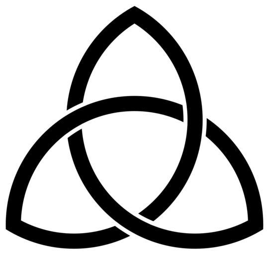 | Keywords: Triquetra-Vesica-solid.svg A form of the Triquetra symbol which has the exact geometrical proportions to be composed of three overlapping Vesica piscis symbols -- something which is important to a few authors of books on Christian symbolism Solid version For other versions of the triquetra see also Image Triquetra-Vesica png Image Triquetra-Double png Image Triquetra-Interlaced-Triangle-Circle png Image Triquetra-tightly-knotted png and Image Triquetra-circle-interlaced png The six curve-intersection points define four small equilateral triangles which make up one large equilateral triangle Generated by means of the following PostScript code <pre> /y 240 120 3 sqrt mul add def 30 setlinewidth 306 240 240 -1 928 181 928 arc stroke 186 y 240 -121 928 61 928 arc stroke 426 y 240 118 072 301 928 arc stroke 8 setlinewidth 1 setgray 306 240 259 112 122 arc stroke 306 240 221 117 128 5 arc stroke 186 y 259 -8 2 arc stroke 186 y 221 -3 8 5 arc stroke 426 y 259 232 242 arc stroke 426 y 221 237 248 5 arc stroke showpage EOF</pre> vector PostScript source 2005; converted to SVG and uploaded to Commons 2013 AnonMoos Interlaced triquetra Trefoil knot diagrams with 3-fold rotational symmetry Images with PostScript source code Black line knots and links Knots and links on transparent background |