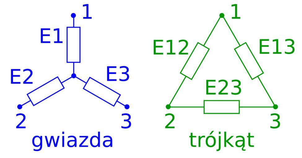 Keywords: Trójkat gwiazda.svg pl Trójfazowe połączenia typu gwiazda i trójkąt en Three-phase connections wye and delta Own Zureks 2009 Three-phase electric power
