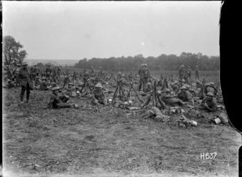 | Keywords: the great war thegreatwar great war greatwar world war one worldwarone world war i worldwari wwi first world war firstworldwar stacked rifles stackedrifles rifle stack riflestack rifle lee enfield leeenfield lee enfield rifle leeenfieldrifle short magazine lee enfield shortmagazineleeenfield smle soldier soldiers new zealand expeditionary force newzealandexpeditionaryforce nzef blackandwhite monochrome outdoor photo border black and white New Zealand troops attending the NZ Infantry Brigade horse show, held in Vaucelles, relaxing with their kit and rifles in preparedness for a German attack. Photograph taken 1 June 1918 by Henry Armytage Sanders. Inscriptions: Inscribed - Photographer's title on negative -bottom right: H637. Quantity: 1 b&w original negative(s). Physical Description: Dry plate glass negative 4.75 x 6.5 inches Troops at the New Zealand Infantry Brigade horse show remain alert to a German attack, World War I. Royal New Zealand Returned and Services' Association :New Zealand official negatives, World War 1914-1918. Ref: 1/2-013244-G. Alexander Turnbull Library, Wellington, New Zealand. natlib.govt.nz/records/22795485 New Zealand troops attending the NZ Infantry Brigade horse show, held in Vaucelles, relaxing with their kit and rifles in preparedness for a German attack. Photograph taken 1 June 1918 by Henry Armytage Sanders. Inscriptions: Inscribed - Photographer's title on negative -bottom right: H637. Quantity: 1 b&w original negative(s). Physical Description: Dry plate glass negative 4.75 x 6.5 inches Troops at the New Zealand Infantry Brigade horse show remain alert to a German attack, World War I. Royal New Zealand Returned and Services' Association :New Zealand official negatives, World War 1914-1918. Ref: 1/2-013244-G. Alexander Turnbull Library, Wellington, New Zealand. natlib.govt.nz/records/22795485 |