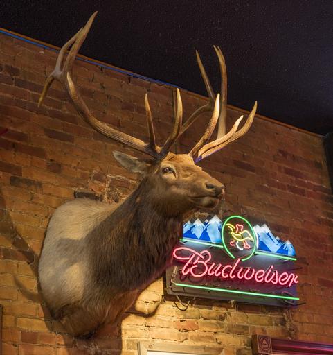 Keywords: Trophy head inside the Springs Downtown Bar and Grill, which turned a 1904 building and town gathering place in Glenwood Springs, Colorado, into a restaurant and tavern in 1974 LCCN2015633579.tif 1 photograph digital tiff file color Notes Purchase; Carol M Highsmith Photography Inc ; 2015; DLC/PP-2015 068 ; Forms part of Gates Frontiers Fund Colorado Collection within the Carol M Highsmith Archive ; Credit line Gates Frontiers Fund Colorado Collection within the Carol M Highsmith Archive Library of Congress Prints and Photographs Division ; Title date and keywords based on information provided by the photographer 2015 Creator Carol M Highsmith Library of Congress Catalog http //lccn loc gov/2015633579 Image download https //cdn loc gov/master/pnp/highsm/33500/33564a tif Original url http //hdl loc gov/loc pnp/highsm 33564 No known restrictions on publication LOC-image highsm 33564 PD-Highsmith Images uploaded by Fæ Gates Frontiers Fund Colorado Collection within the Carol M Highsmith Archive Glenwood Springs Colorado Restaurants in Colorado Gates Frontiers Fund Colorado Collection within the Carol M Highsmith Archive Library of Congress Prints and Photographs Division Photographs by Carol M Highsmith