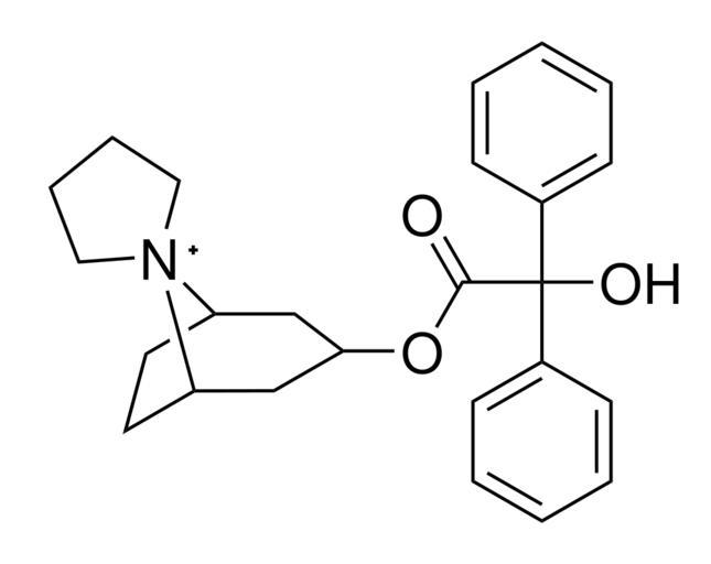 | Keywords: Trospium.svg Chemical structure of Trospium Own 2007-09-02 Bana Peti GNU Free Documentation License GFDL Public domain PD Comments Made by ChemDraw using ACS drawing style and converted to svg by Scribus Please drop me a note if you need the source file GFDL-self-no-disclaimers relicense Tropanes |
