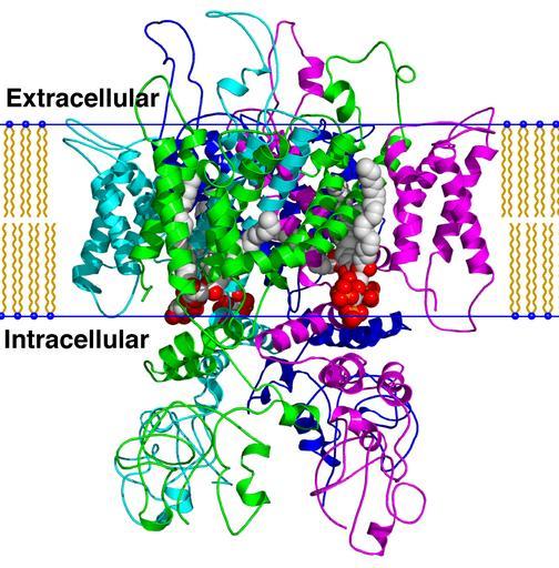 Keywords: Trpv1 pip2 bilayer cropped.png en en Created using PyMol and a homology model of the TRPV1 ion channel based on a homology model published in cite journal Brauchi S Orta G Mascayano C Salazar M Raddatz N Urbina H Rosenmann E Gonzalez-Nilo F Latorre R Dissection of the components for PIP2 activation and thermosensation in TRP channels Proceedings of the National Academy of Sciences of the United States of America 104 24 10246 “51 2007 June 17548815 1891241 10 1073/pnas 0703420104 own Boghog2 2008-11-02 own Boghog2 Trpv1_pip2_bilayer2 png Protein structures Ion channels |