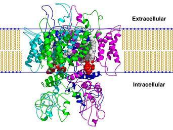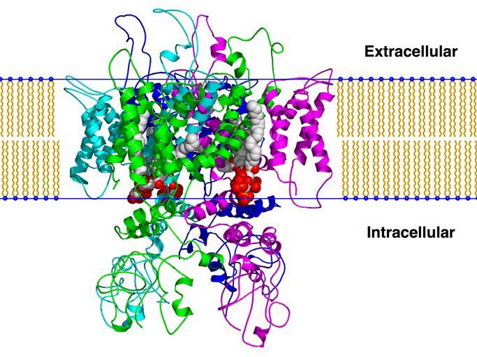 Keywords: Trpv1 pip2 bilayer.png en Created using PyMol and a homology model of the TRPV1 ion channel based on a homology model published in cite journal Brauchi S Orta G Mascayano C Salazar M Raddatz N Urbina H Rosenmann E Gonzalez-Nilo F Latorre R Dissection of the components for PIP2 activation and thermosensation in TRP channels Proceedings of the National Academy of Sciences of the United States of America 104 24 10246 “51 2007 June 17548815 1891241 10 1073/pnas 0703420104 Own Boghog2 2008-11-02 Protein structures Ion channels |
