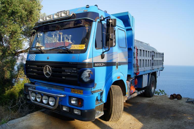 Keywords: truck front view vehicle transport front the front cover is grille blue